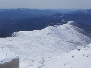We climbed Mt. Washington on Friday and Saturday this past weekend. I guided with Jamie on Friday and Brett and Jamie went for it on Saturday. Since I wasn’t there on Saturday I cant really give any details, but Friday was an awesome day on the mountain! Unfortunately I forgot my camera, so I’m relying on the climbers to share their photos with me. Friday was the first time this season I climbed the Tuckerman Ravine trail in only a techwick shirt. The thermal was much too hot. The temperature at the base by 8AM was what seemed to be 45 or 50 degrees. We climbed the Lions Head Summer Route which meant we had to cross the notorious avalanche path, but there wasn’t quite enough snow to release. We crossed it one at a time and quickly to be safe. Thanks to the newly fallen 24″ of snow, the rocks were once again covered, which made for much better footing than the previous week. We hit Lions Head by 12PM. The traverse across the summit cone was really soft and whoever broke trail after the new snow, sent the trail about 100 ft low of the normal trail, so we broke some new trail to try to get it back on target. The summit was amazing with 360 degree views. For the first time since January, I got to see the northern presidentials and all of the southern presidentials too. There was a pretty consistent 30mph breeze blowing which chilled you while standing still, but with a wind breaker on, it was quite warm. We spent an hour on the summit and headed down. The descent was hindered by some painful knees, but nonetheless we descended without incident for a 10 hour round trip summit day! Friday was probably the best weather I have had since the start of the season. Send me pictures so I can post them!